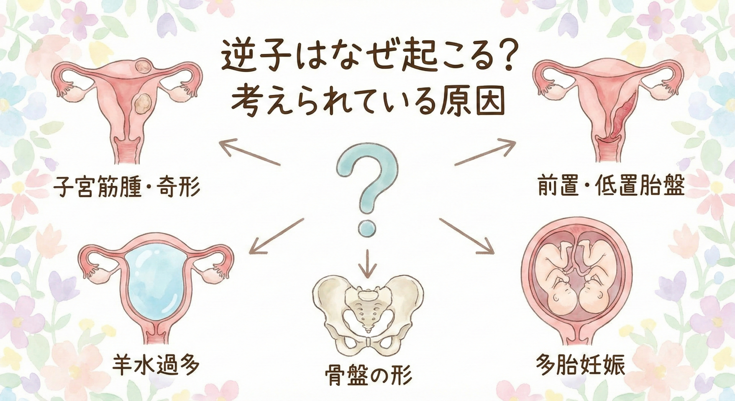 逆子の原因は一つに特定できるものではなく、複数の要因が重なって起こると考えられています。