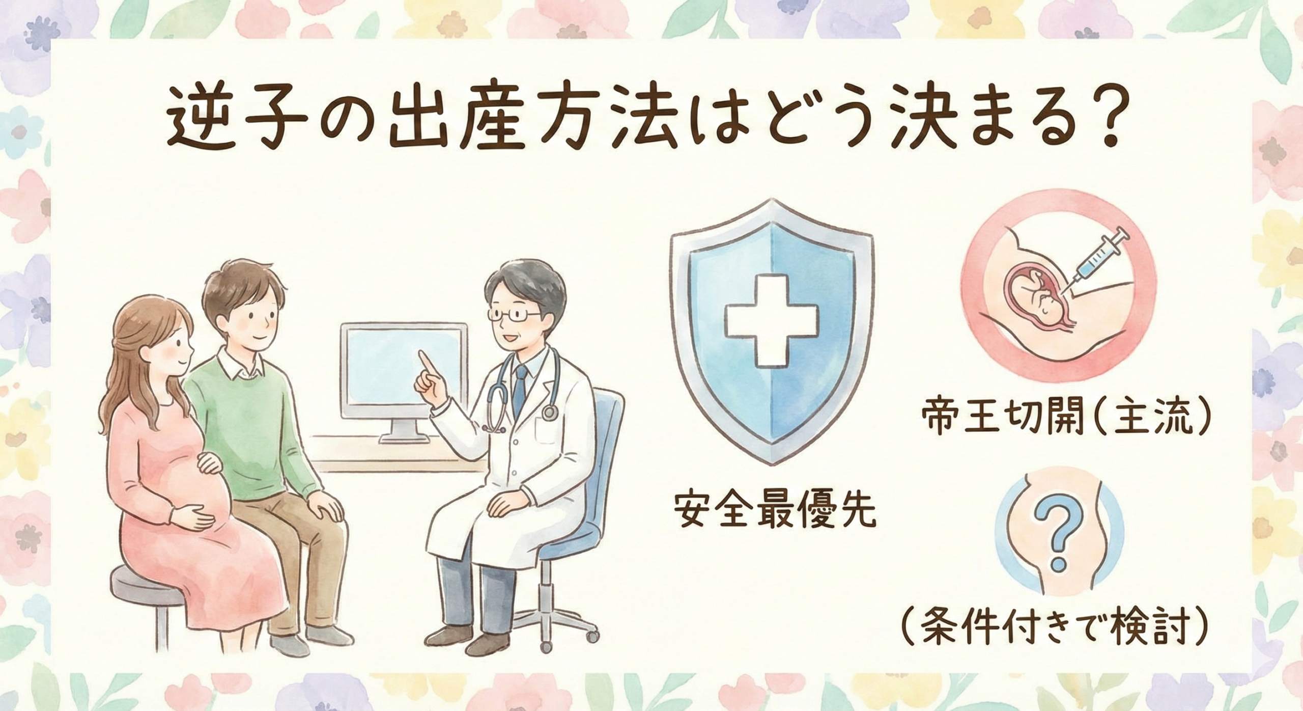 逆子と診断された場合、どのように出産方法が決まるのかを知っておくことは安心につながります。日本では、逆子の場合は帝王切開を選択する施設が大半です。 これは赤ちゃんと母体の安全を最優先に考えた判断です。
