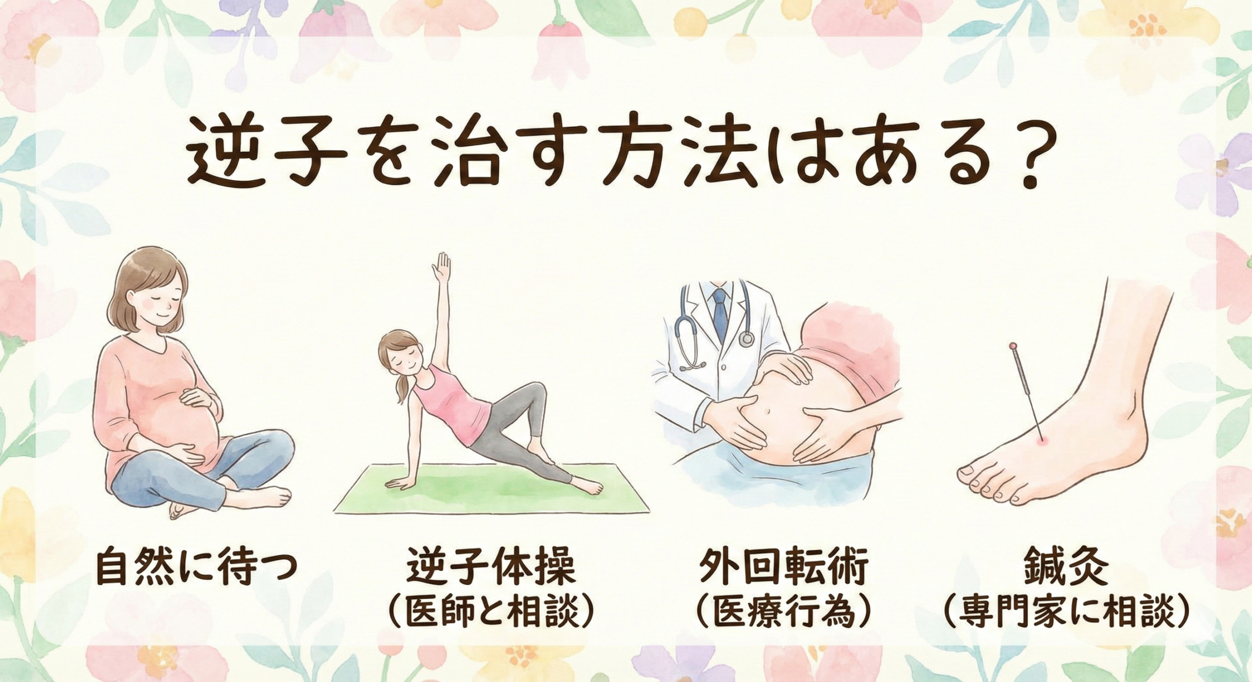 逆子体操や外回転術などの選択肢もありますが、適応やリスクは人それぞれ異なります。不安や疑問があれば、妊婦健診の際に医師へ相談し、赤ちゃんとママにとって最も安全な方法で出産を迎えましょう。