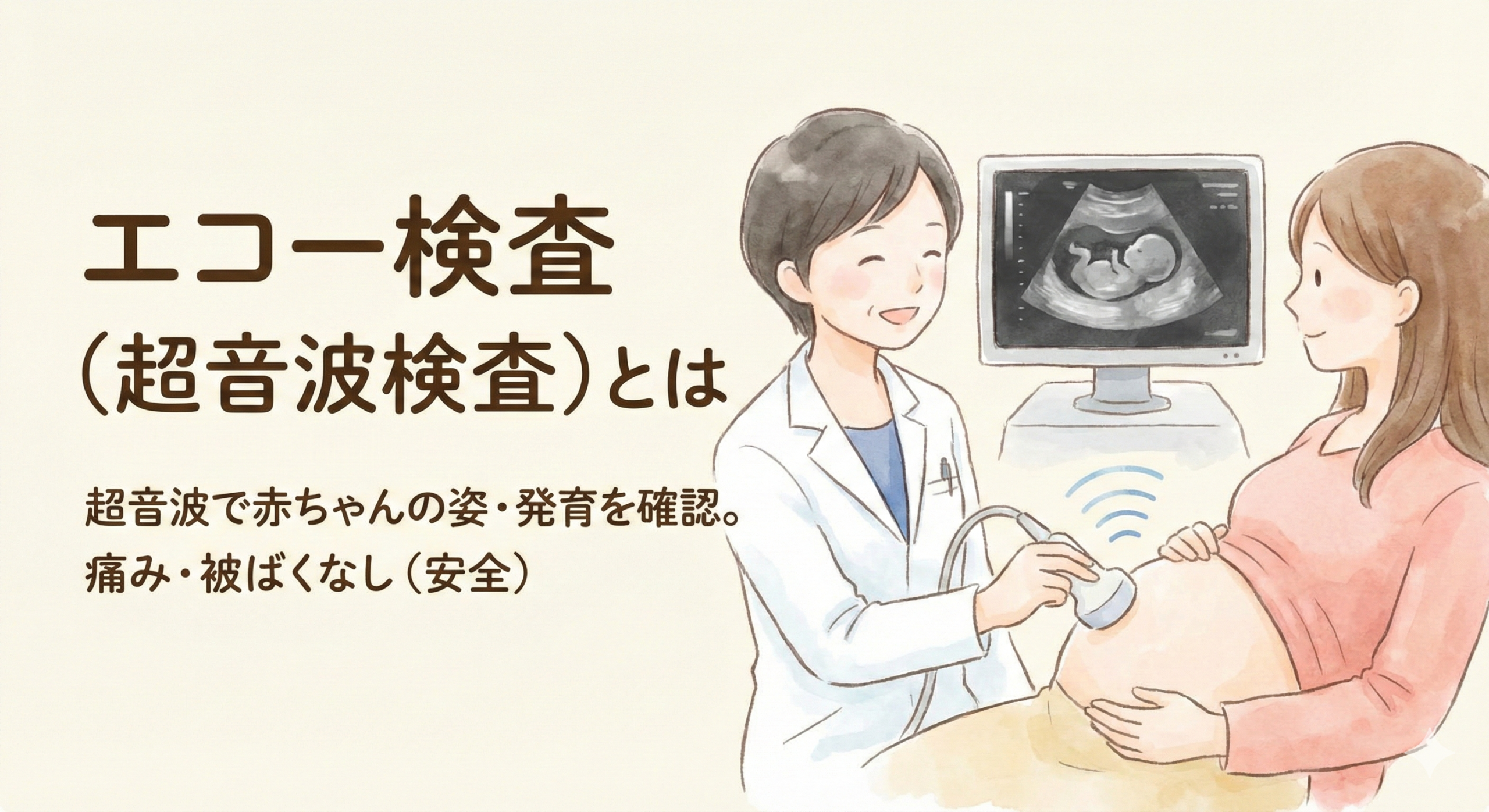 エコー検査(超音波検査)は、超音波の反射を利用して、胎内の赤ちゃんの姿や発育状態を映し出す検査です。妊娠中に赤ちゃんを直接「目で見て」確認できる唯一の検査であり、痛みや放射線被ばくの心配もありません。