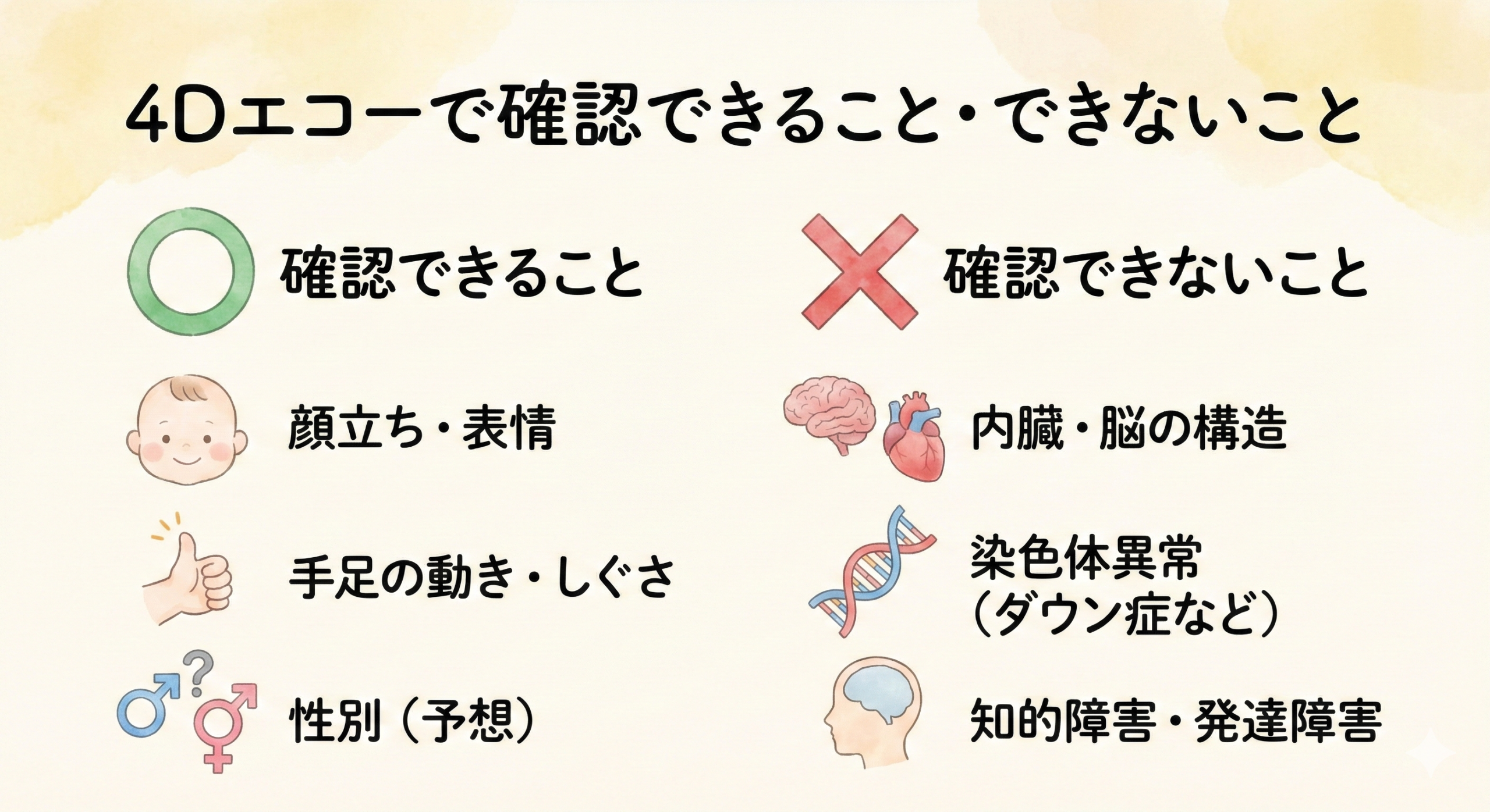 本記事では、4Dエコーで分かること・分からないことを整理し、障害の有無を確認するための正しい方法について解説します。