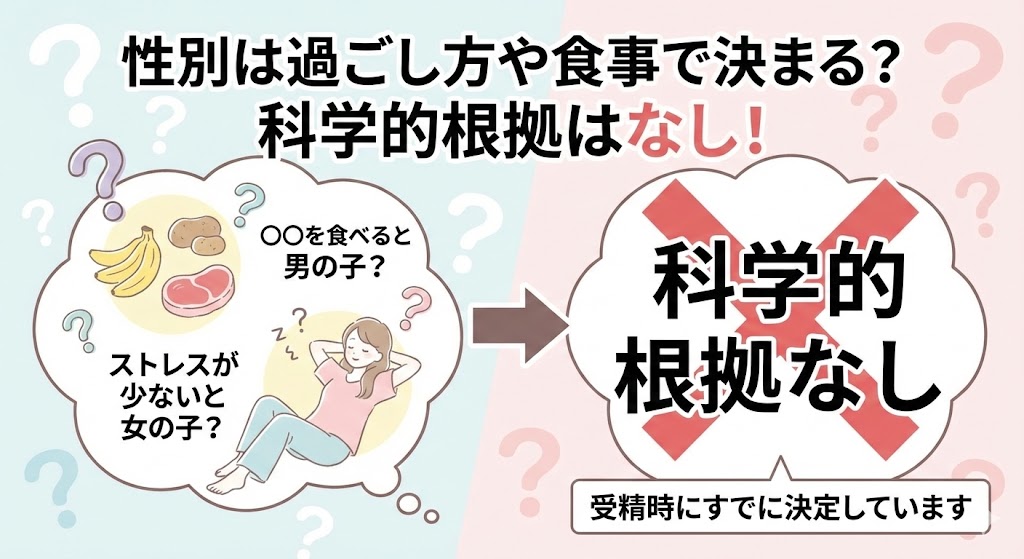「〇〇を食べると男の子が生まれる」「ストレスが少ないと女の子になりやすい」といった話を耳にすることがあります。昔から性別を左右する方法として、食事や生活習慣が影響するという説がさまざまありますが、いずれの説も科学的根拠に乏しく、参考にはできません。